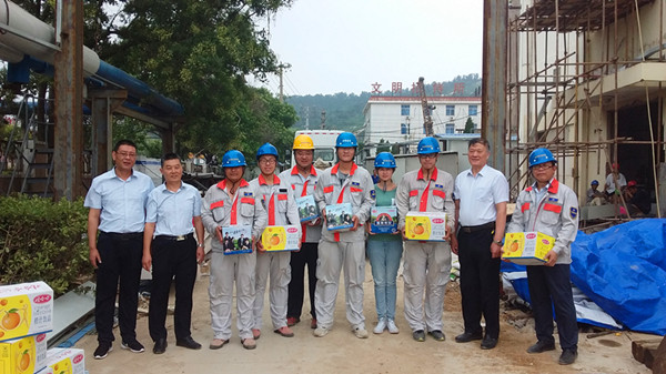7月28日上午,公司黨委書記吳再忠、經(jīng)理孫政權(quán)、工會主席王志軍一行深入氨綸施工現(xiàn)場走訪慰問一線職工,送去深切的關(guān)懷和慰問,把防暑慰問品送到大家手中。在氨綸施工現(xiàn)場,孫經(jīng)理同現(xiàn)場員工親切交談,叮囑他們在保質(zhì)保量完成工作任務(wù)的同時更要關(guān)心職工的身心健康。