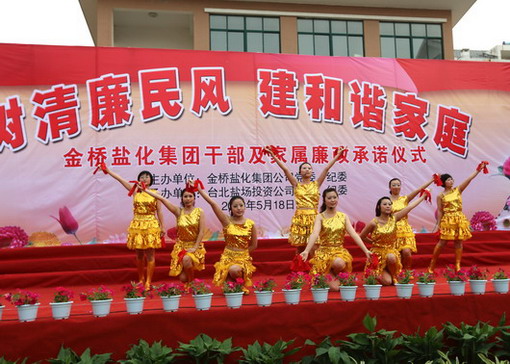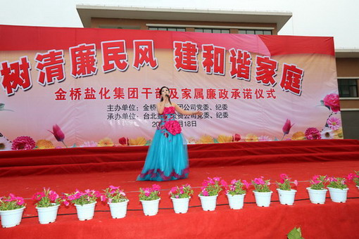 5月18日下午,集團(tuán)公司在臺北鹽場投資公司舉行黨員干部及家屬“樹清廉民風(fēng),建和諧家庭”廉政承諾儀式,并進(jìn)行了贈(zèng)書儀式和豐富多彩的文藝演出。在文藝演出中,我公司職工自編自演的快板《廉政準(zhǔn)則送清風(fēng)》、女聲獨(dú)唱《守住清廉》、合作節(jié)目詩朗誦《清廉暢想》受到了觀看演出的各級領(lǐng)導(dǎo)和職工群眾的一致好評。(司宣 司紀(jì))