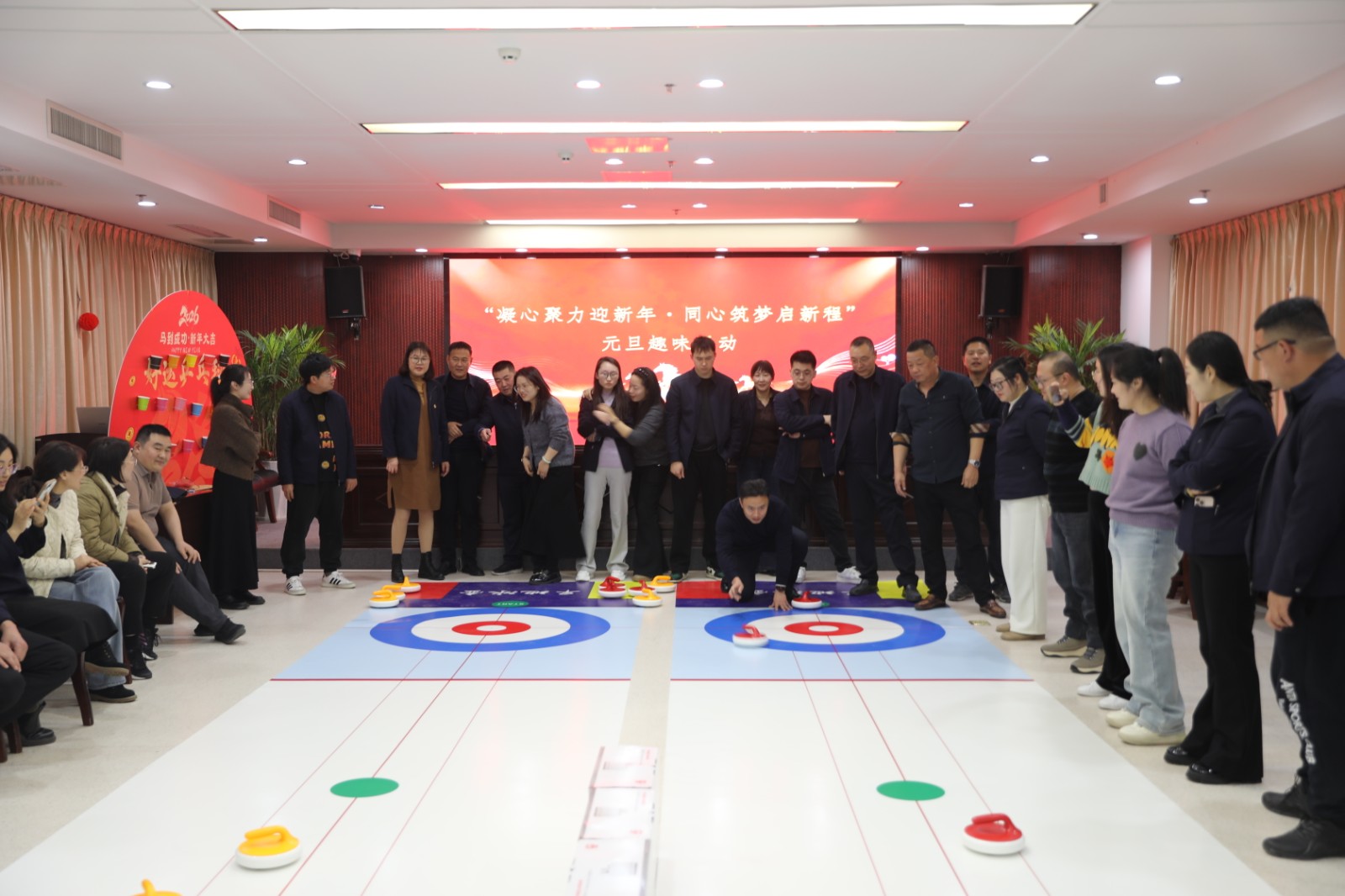 本次趣味活動設(shè)置了團(tuán)隊協(xié)作與個人參與兩大類項目,兼顧競技性與趣味性。團(tuán)隊項目中,“摜蛋比賽”以自由組合、積分角逐的方式進(jìn)行,職工們在牌桌上默契配合、智慧交鋒,最終將評選出一、二、三等獎各一組;“室內(nèi)冰壺”則以四人為一隊,隊員們精準(zhǔn)控制推壺力度與角度,努力使冰壺滑向營壘中心,通過多局累計積分決定勝負(fù),同樣設(shè)有團(tuán)隊獎項。這兩項活動充分考驗了團(tuán)隊的協(xié)作能力與策略思維,現(xiàn)場氣氛熱烈,歡聲不斷。