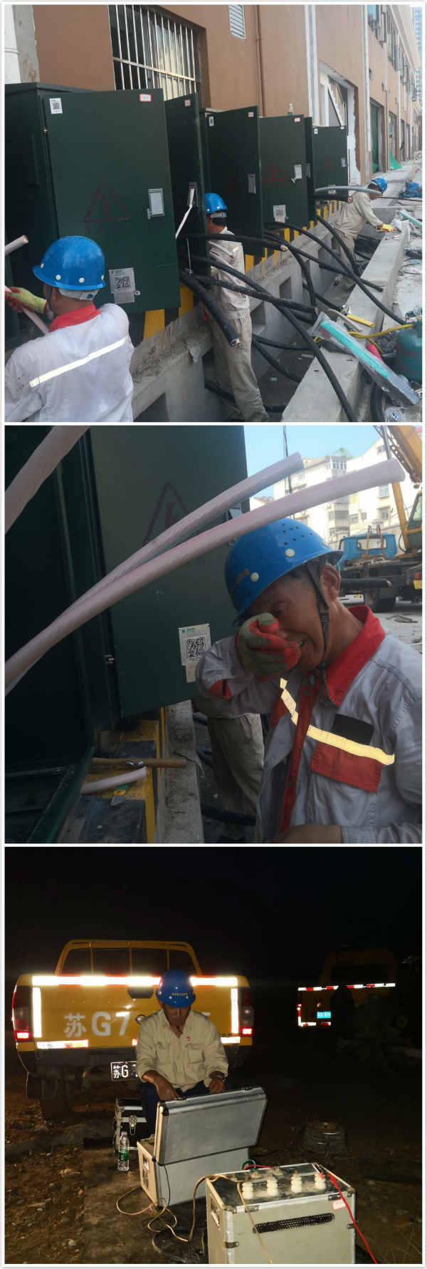 傍晚,剛剛干完活還沒吃飯的他們,又接到灌西和風(fēng)風(fēng)電項(xiàng)目電纜檢修任務(wù),顧不上休息,立刻驅(qū)車前往80公里外的灌西施工現(xiàn)場,對電纜做實(shí)驗(yàn),找出故障點(diǎn)并進(jìn)行更換。直至22點(diǎn),才完成搶修任務(wù)。隨后,他們立即返回連云區(qū),準(zhǔn)備第二天的工程施工。