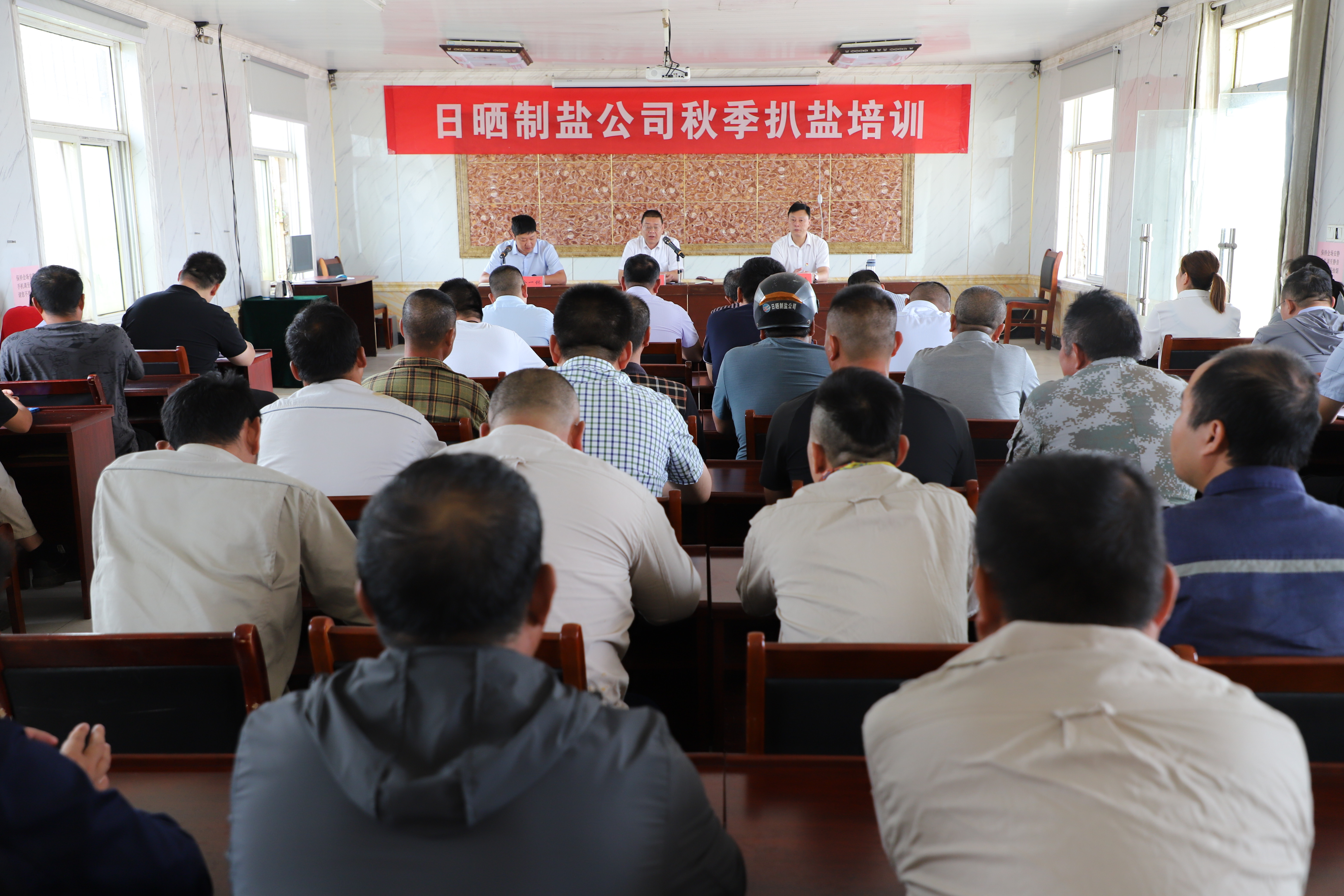 為貫徹落實(shí)“安全第一,預(yù)防為主,綜合治理"的安全生產(chǎn)方針,提高員工安全意識(shí)和安全操作技能,9月15日上午,公司開(kāi)展扒鹽培訓(xùn),公司黨委書(shū)記、董事長(zhǎng)孫政權(quán)、總經(jīng)理吳衛(wèi)平出席,常務(wù)副總經(jīng)理徐一林主持會(huì)議,日曬制鹽管理人員、后勤人員及公司帶班人員參加培訓(xùn)。