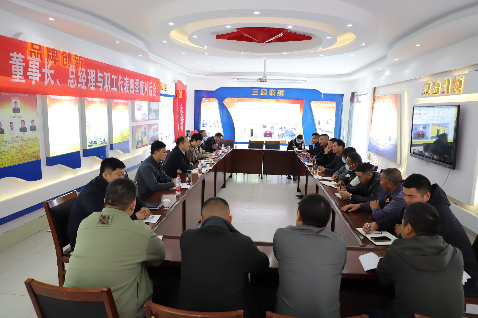 2022年11月3日下午,職工代表與公司董事長(zhǎng)、總經(jīng)理齊聚一堂,就生產(chǎn)生活中遇到的問(wèn)題提建議、獻(xiàn)良策。