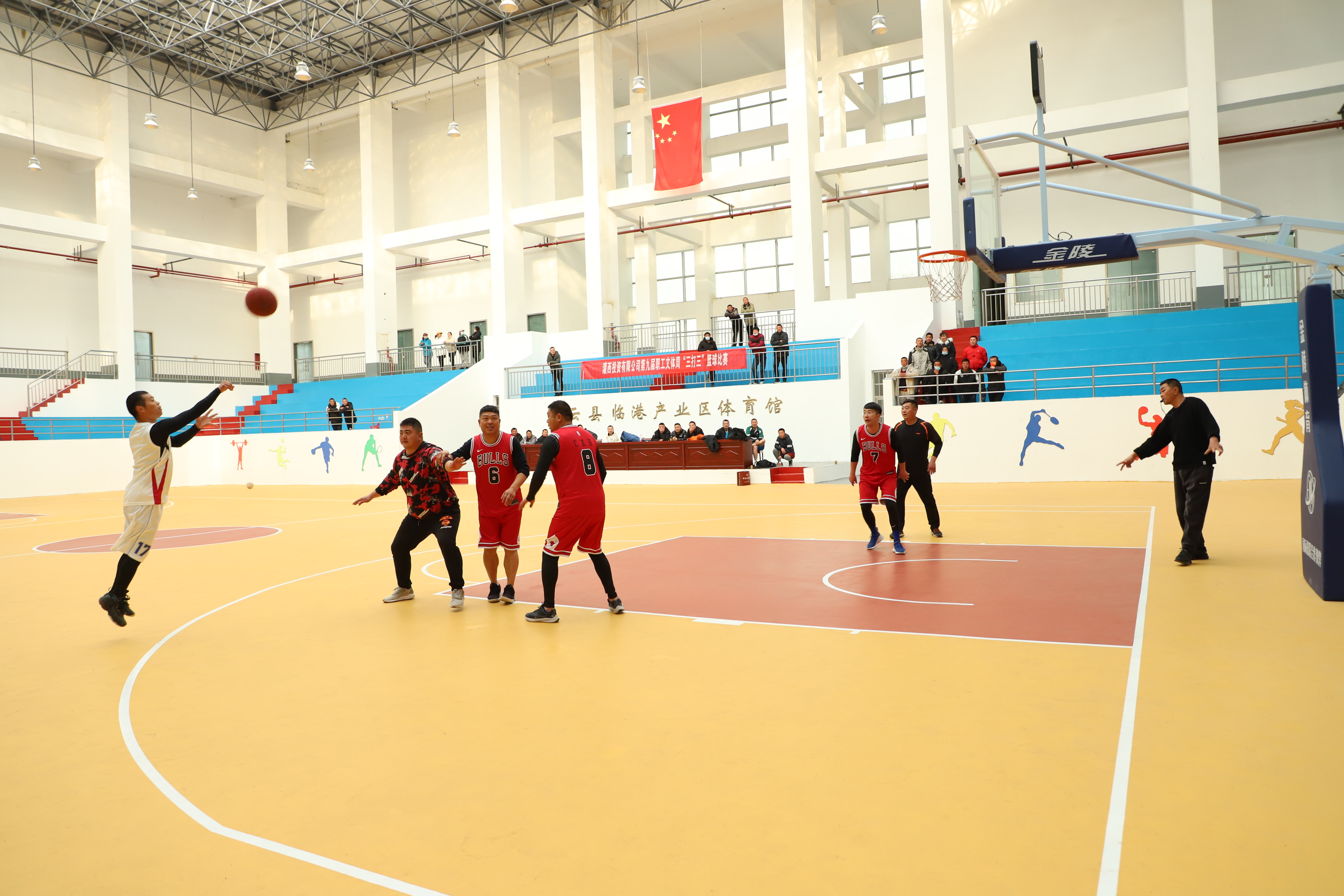 下午,“三打三”籃球賽在管委會籃球館正式開賽,雖然天氣寒冷,但依然不減籃球比賽的火熱氣氛。比賽還沒開始,參賽選手們早早的就開始進行著熱身準備,賽場外,更有許多灌西公司職工、群眾前來觀看比賽。14點整,隨著裁判的一聲哨響,比賽正式開始。賽場上,隊員們互相配合,頑強拼搏,奔跑、搶球、擋拆、投球的勁一個比一個足,雙方隊員你爭我奪,每一個參賽隊員都把各自的看家本領(lǐng)展示出來,場面甚是熱鬧、精彩。球場下,觀眾們加油吶喊,為隊員鼓勁。伴隨著場上隊員的一次次精彩表現(xiàn),現(xiàn)場不時響起觀眾的掌聲和喝彩聲。