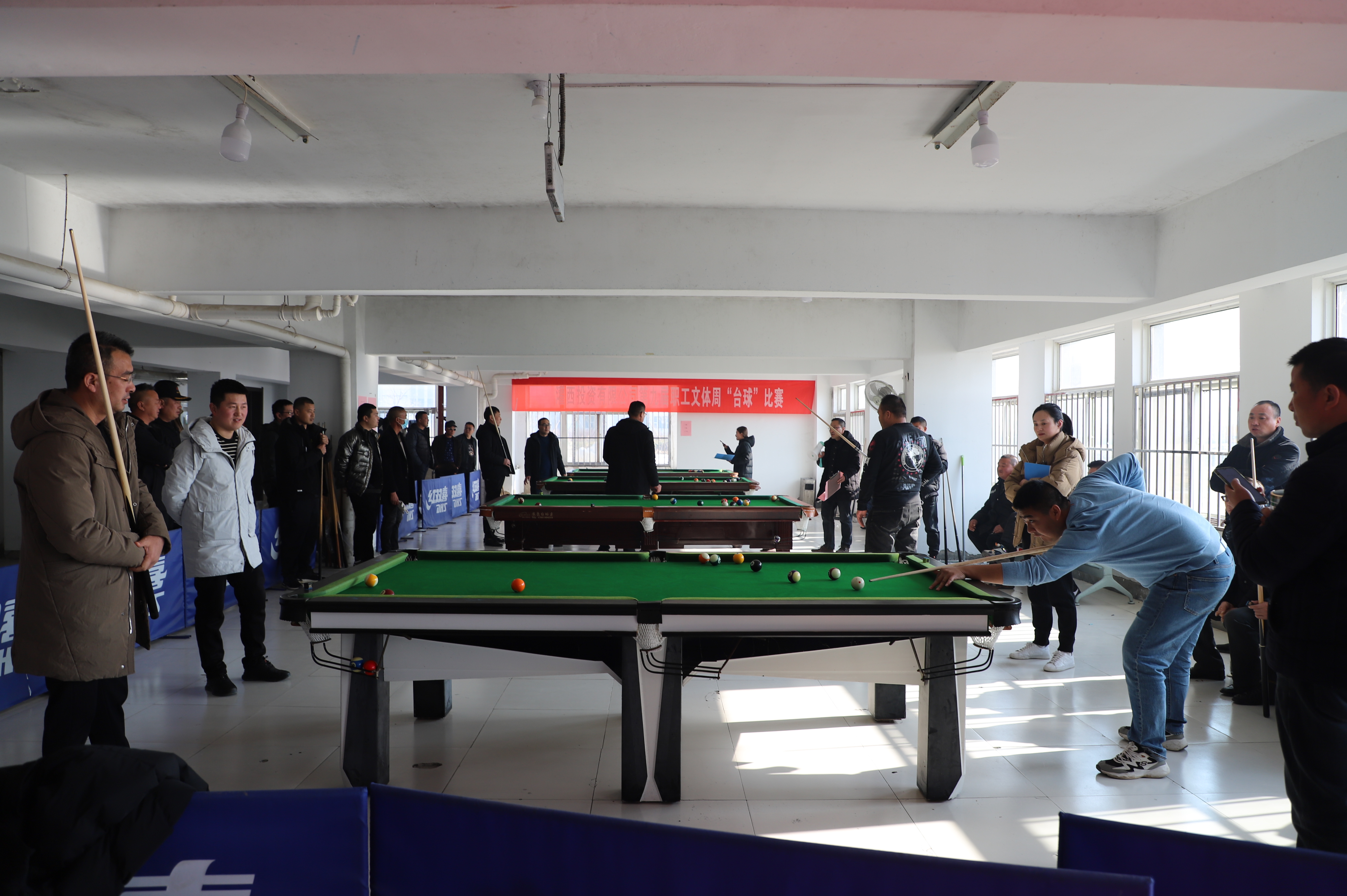 12月21日下午,臺球比賽在裁判員一聲令下正式開始,來自各個單位56名選手,分為8組進(jìn)行比賽,采取單循環(huán)淘汰規(guī)則,小組內(nèi)進(jìn)行逐對“廝殺”,小組前兩名出線。比賽過程相當(dāng)激烈,有的眾多高手被分在一組,俗稱“死亡之組”,每個人臉色凝重,場外圍滿了觀眾;有的爆出“冷門”,去年獲得第一名的選手第一輪慘遭淘汰;有的選手比較緊張,洞門門口球都沒有打進(jìn)。經(jīng)過激烈角逐,共有16名選手出線。