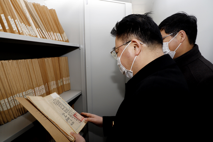 戴鴻鳴一行先后到宵洋五灌河碼頭、公濟(jì)公司遺址、機關(guān)檔案室等地實地調(diào)研。在宵洋五灌河碼頭參觀了新建的黨員活動室和職工食堂,并仔細(xì)詢問了炊事員每天伙食情況、用餐人數(shù)、用餐時間等。在公濟(jì)公司遺址查看建筑保存情況,并聽取了公濟(jì)公司遺址相關(guān)保護(hù)情況的介紹。在機關(guān)檔案室仔細(xì)參看翻閱了灌西歷史檔案。隨后在機關(guān)三樓會議室召開集團(tuán)公司黨建工作灌西調(diào)研會。