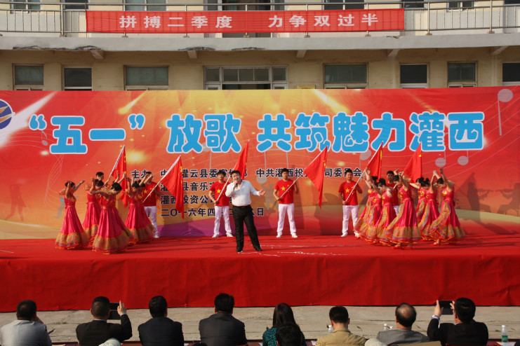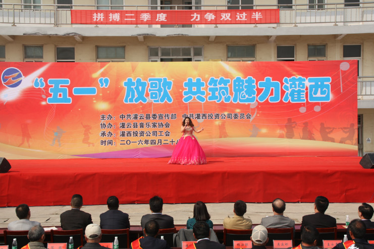 灌云縣委傳部副部長、文聯(lián)主席孫成軍、音協(xié)主席吳平、集團公司工會副主席李嵐琴,灌西投資公司領導班子成員以及來自公司各條戰(zhàn)線的廣大職工和群眾近千人一同觀看了演出。演出前,投資公司黨委副書記、總經(jīng)理李國文作了熱情洋溢的致詞。