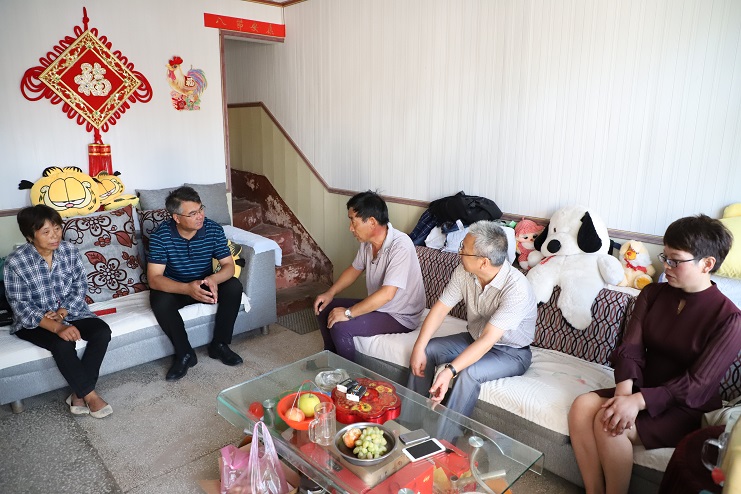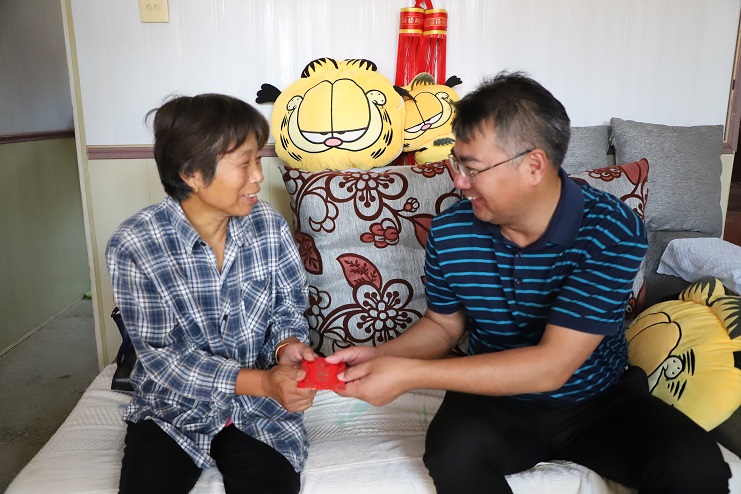 “現(xiàn)在身體還好嗎?兒子現(xiàn)在怎么樣?”在困難群眾于蘭英家里,王德志董事長一進(jìn)門就關(guān)切的詢問她的生活狀況。“感謝公司黨委的關(guān)心和照顧,目前家里一切都好。”看到王德志董事長的到來,于蘭英有些激動的說道。