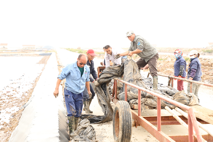 國(guó)慶假日期間,日曬制鹽公司廣大員工堅(jiān)守生產(chǎn)第一線,加強(qiáng)值班,強(qiáng)化“三雨”操作,及時(shí)拉放塑布,確保降雨鹽斤不受損。5號(hào)起,小雨還沒有停,就全面投入到扒鹽工作中來,他們正擼起袖子加油干,在金秋收獲的季節(jié)里,用靚麗的業(yè)績(jī)迎接黨的十九大的召開。(季興勝)
