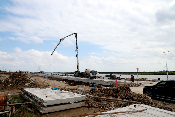 “十一”國慶節(jié)長假成為大部分人難得的休閑時光,但在灌西五灌河碼頭二期工程項目的施工現(xiàn)場,生產(chǎn)作業(yè)仍在熱火朝天地進行著,建設(shè)者們放棄休息,奮戰(zhàn)在施工生產(chǎn)一線,搶抓工期,全力推進二期碼頭項目建設(shè)進度。