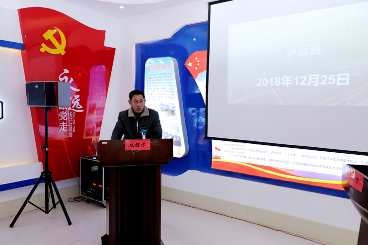 活動中,首先對埒南和新河兩個分公司的八班、十一班四個班組灘容灘貌、冬準工作推進情況進行實地觀摩評比。隨后在新河支部黨建活動室,新河制鹽分公司作為守擂方,埒南制鹽分公司作為攻擂方,從安全生產(chǎn)、班組管理、支部工作等方面進行陳述。通過分公司、包片區(qū)和生產(chǎn)班組三個層面一對一對擺數(shù)據(jù)、亮特色、比成績,生產(chǎn)、黨建、人力資源、工會及安全等部門負責人面對面點評和打分,最終新河制鹽分公司作為擂主分別在公司層面和委員包片區(qū)層面勝出,守擂成功;在班組層面,埒南制鹽分公司十一班攻擂成功?;顒拥拈_展,營造濃厚的比學趕超氛圍,廣大員工立足當前,著眼明年,強抓冬準工程質(zhì)量,有力推進了冬準工作開展。(季興勝)