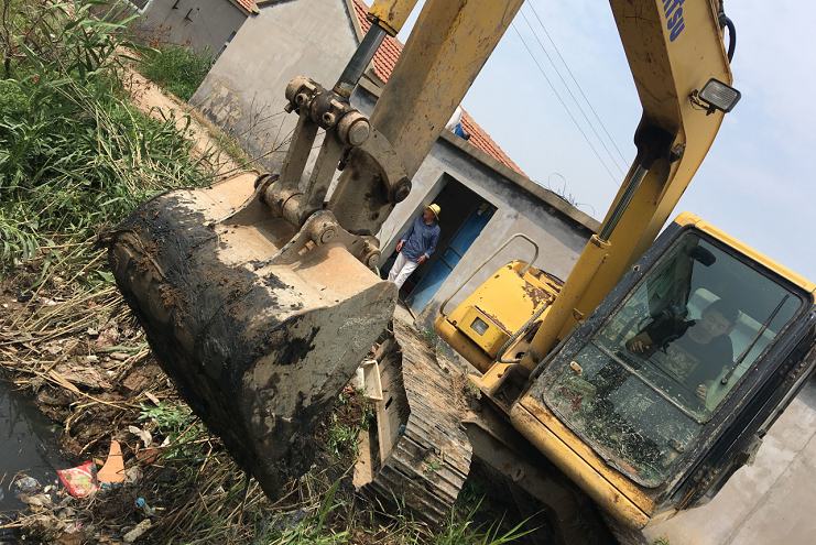 "各項(xiàng)防汛工作中,當(dāng)數(shù)中二圩排水道堵塞問(wèn)題最為突出,由于之前的燕尾港鎮(zhèn)拆遷,大量拆遷戶涌入灌西鹽場(chǎng)中二圩地區(qū)生活,違建現(xiàn)象嚴(yán)重,各種建筑垃圾和白色垃圾隨處堆放,排水系統(tǒng)深受其害。為方便職工群眾生活起居,灌西公司對(duì)中二圩地區(qū)排水道進(jìn)行疏通清理,以便安度汛期。”清理現(xiàn)場(chǎng),," 防汛辦公室主任楊善兵說(shuō)道,只見(jiàn)大小挖機(jī)全力施工,對(duì)于大挖機(jī)不好進(jìn)入的居民區(qū)內(nèi)部小溝小道則由小挖機(jī)專門清理,對(duì)于復(fù)雜地形機(jī)械難以進(jìn)入的地方只能人工清理,務(wù)求做到全面徹底,不留死角。
