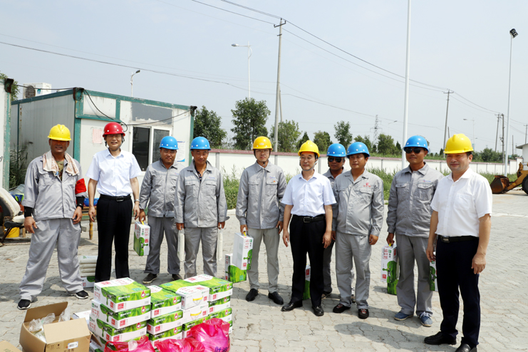 在灌西宵洋公司五灌河碼頭作業(yè)現(xiàn)場,胡建明代表集團(tuán)公司向在一線的碼頭工人們表示深切的感謝和慰問,感謝他們在烈日下為集團(tuán)所付出的辛勞,并叮囑碼頭工人避開高溫時段,科學(xué)合理安排好作業(yè)時間,既要保證生產(chǎn)作業(yè)質(zhì)量和進(jìn)度,又要注意高溫生產(chǎn)作業(yè)安全。