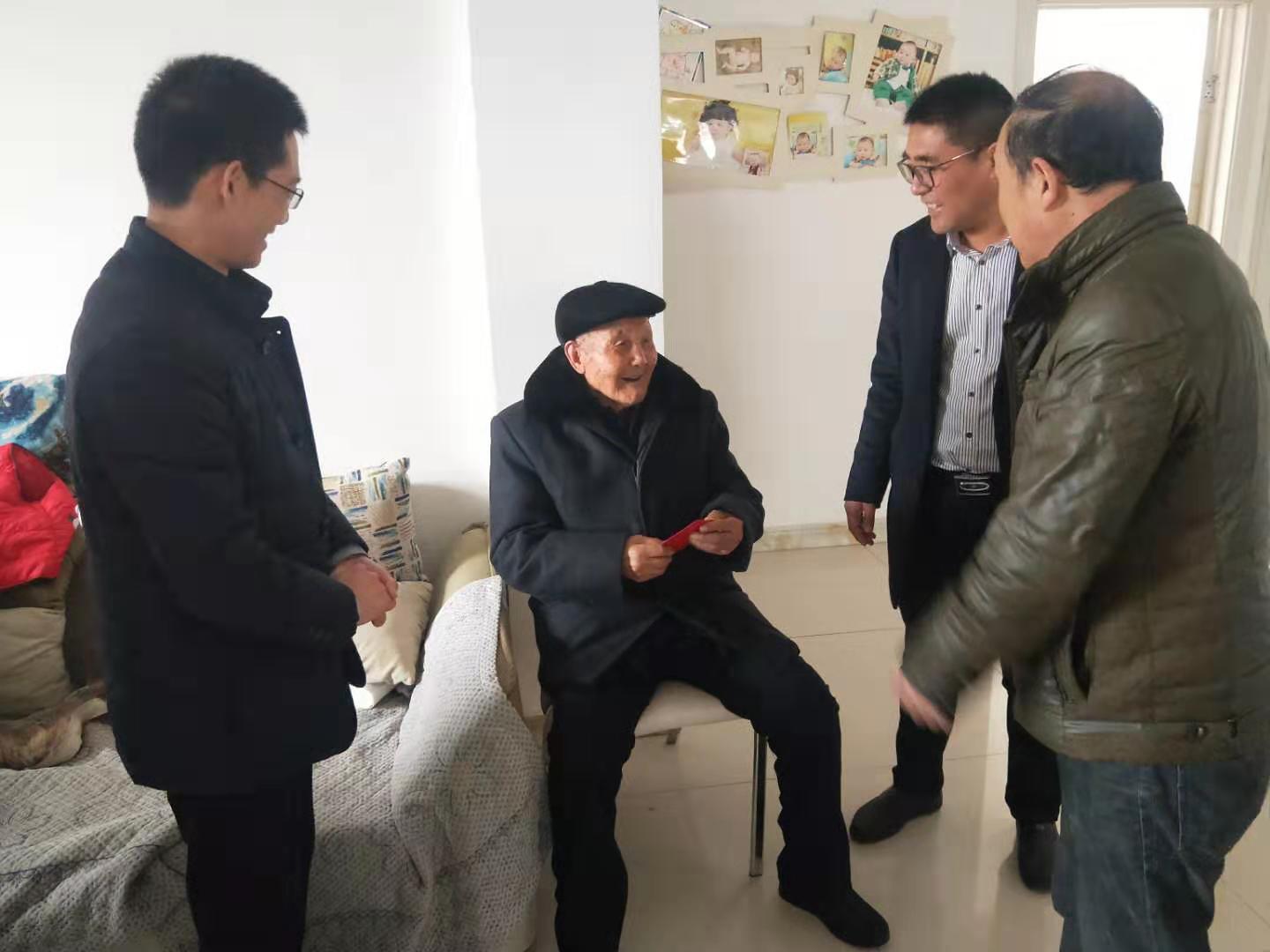 在邵佃成家中,大家與老人拉家常,了解日常飲食起居和身體狀況,祝愿老人幸福安康,健康長壽。據(jù)了解,已有百歲高齡的邵佃成,是公司年齡最大的黨員,生于1921年,有著近60年黨齡,建國前參加工作,為祖國的建設做出了偉大的貢獻。