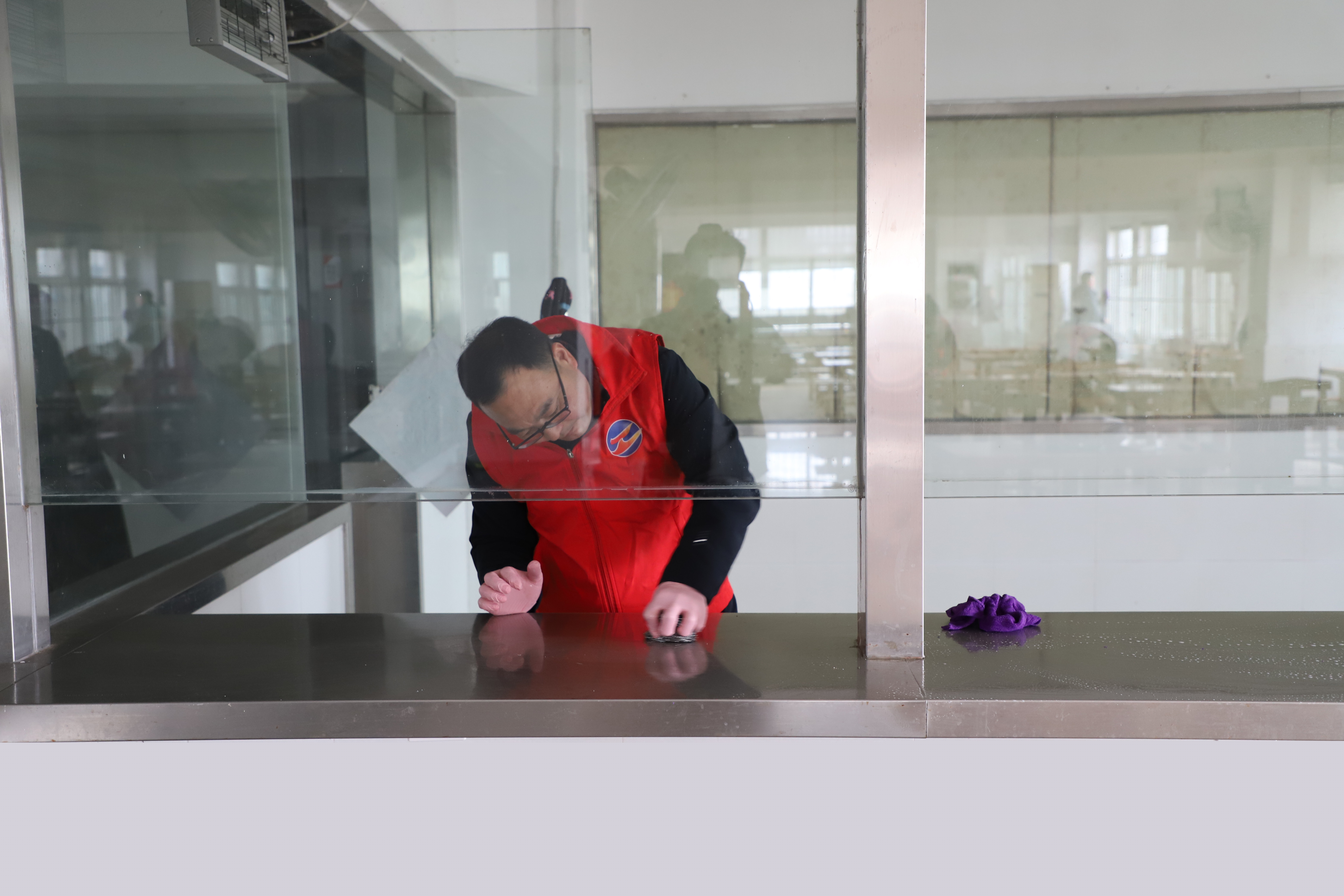 在食堂里隨處可見的志愿者兢兢業(yè)業(yè)的忙碌著,他們不怕臟,不怕累,不遺漏任何衛(wèi)生死角,他們分工合作,有的擦窗,有的抹地,有的清掃垃圾,干勁十足,呈現(xiàn)出一派熱火朝天的勞動(dòng)場面。經(jīng)過兩個(gè)小時(shí)的辛勤勞動(dòng),食堂環(huán)境煥然一新。(西團(tuán))