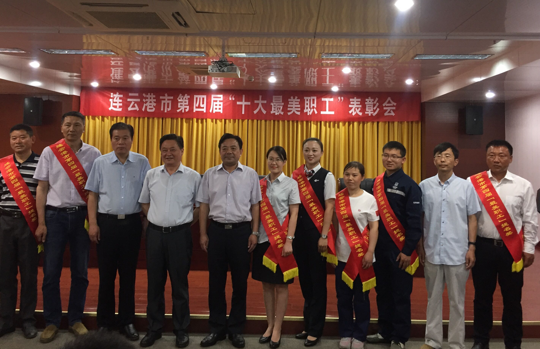近日,在連云港市第四屆港城“十大最美職工”表彰會上,日曬制鹽新河分公司八班班長祝星星榮獲“十大最美職工”提名獎。在表彰會上,市總工會主席鄭平、丁維杰書記、宣傳部副部長李超領(lǐng)導(dǎo)與獲獎人員一起合影留念。