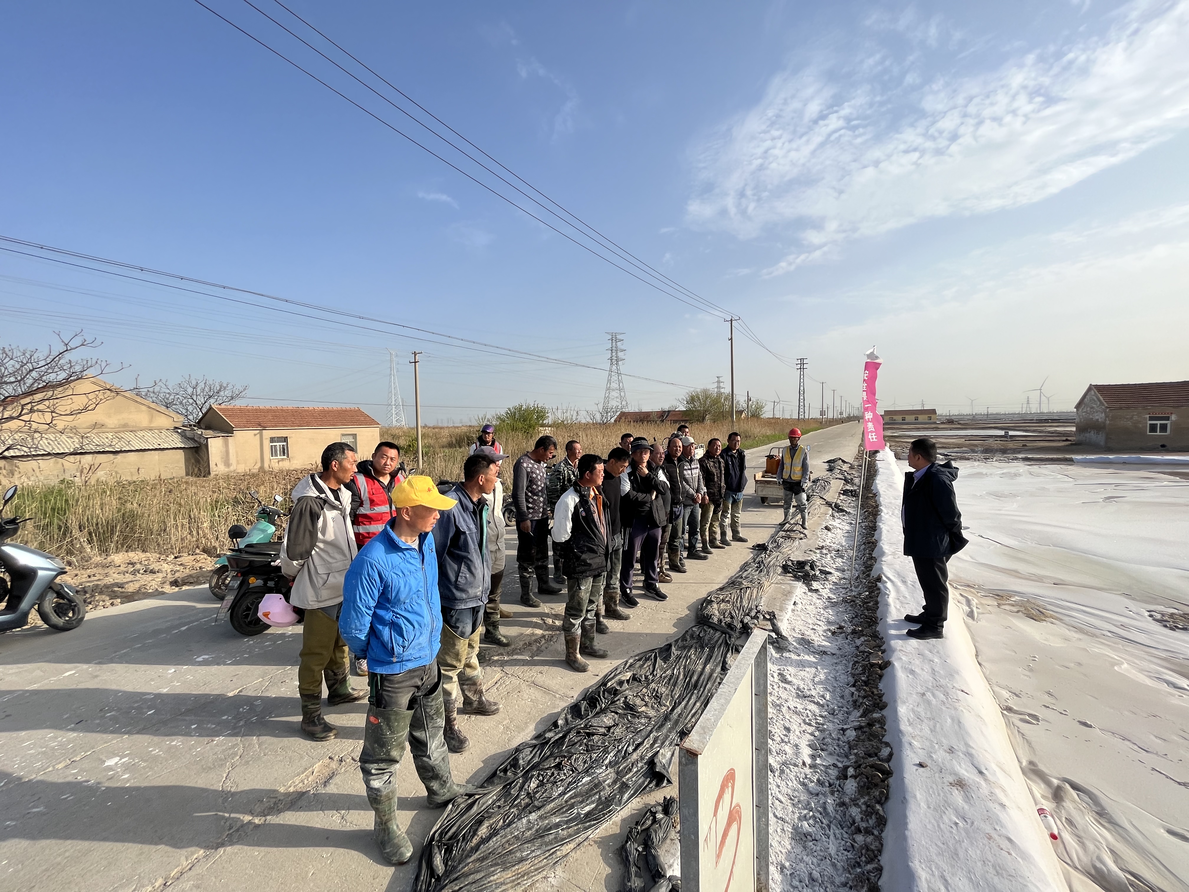 公司經(jīng)理對(duì)各班組長提出要求,一是上半年扒鹽工作接近尾聲,各扒鹽機(jī)組安全生產(chǎn)質(zhì)量不能放松,保質(zhì)保量完成上半年的扒鹽任務(wù)。二是各班組提前謀劃做好防汛工作,查漏補(bǔ)缺做好各項(xiàng)防汛工作,加強(qiáng)塑池管理,做好安全度過雨季謀劃。三是對(duì)各班組灘場(chǎng)文明做出要求,扒鹽大池道路面的干凈整潔無雜物,值班室前后無雜草、雜物。并按時(shí)間節(jié)點(diǎn)完成。四是加強(qiáng)窮制鹵工作,充分利用好護(hù)廩基、溝道、下馬格,要對(duì)這些地方充分泡制鹵水,并做好扒鹽后的鹵水除硫工作。
