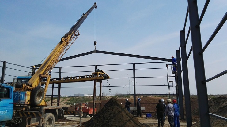 為了擴(kuò)大有機(jī)肥項(xiàng)目生產(chǎn)場(chǎng)地、解決生產(chǎn)庫存產(chǎn)品的堆放以及落實(shí)好翻堆發(fā)酵工序,綠淮公司積極協(xié)調(diào)全員參與,于4月中旬正式興建鋼結(jié)構(gòu)廠房和混凝土場(chǎng)地鋪設(shè)工作。目前廠房工程進(jìn)展非常順利,預(yù)計(jì)兩周內(nèi)竣工。(綠淮 張寶同)