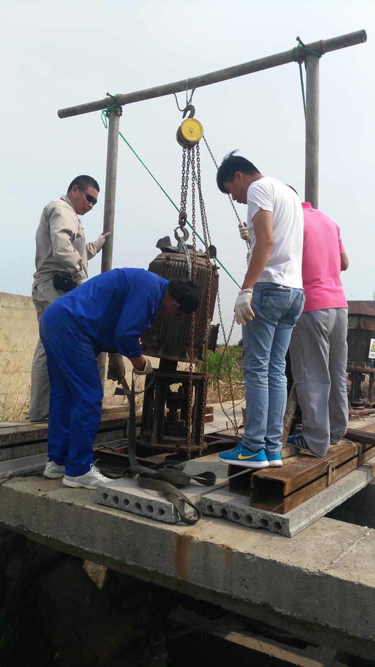 隨著氣溫升高,養(yǎng)殖淡水需求量增大,機泵高負荷運行,損壞率增大。日前大河處于低水位期,機電服務公司抓住當前有利時機,積極組織人力對炅威3臺淡水機泵進行搶修。與雇傭蛙人潛水修理相比,節(jié)約費用3000元。(機電服務公司)