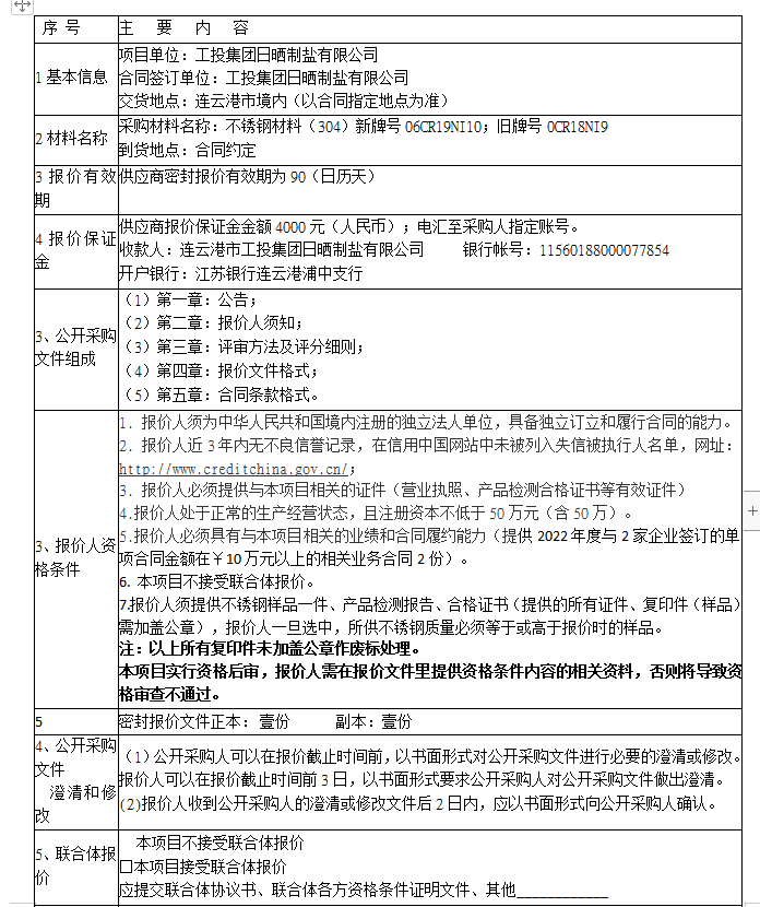 報(bào)價(jià)保證金接收人:連云港市工投集團(tuán)日曬制鹽有限公司。