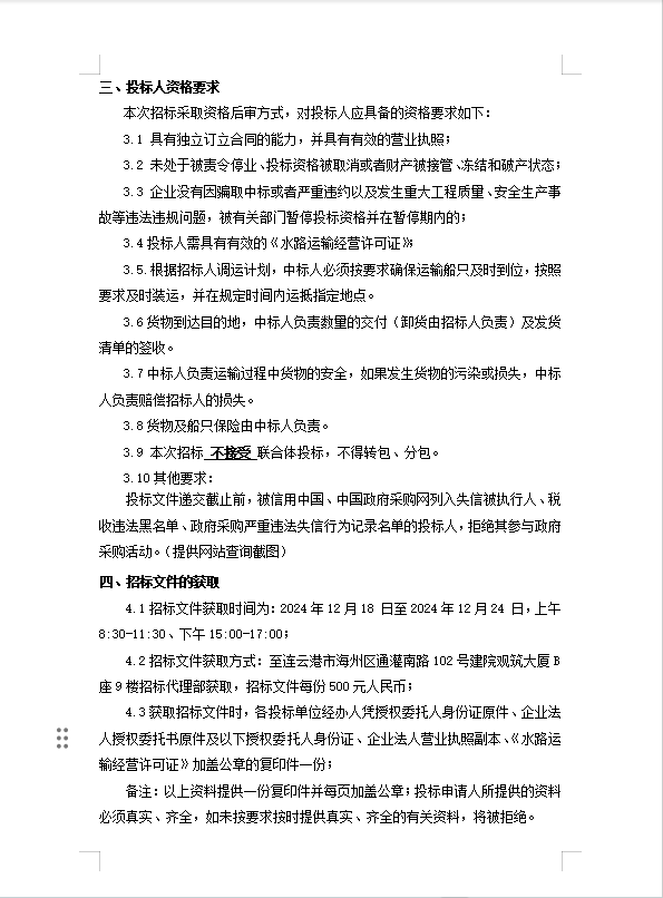 連云港宵洋物流有限公司原鹽內河船舶運輸合格供應商采購招標公告