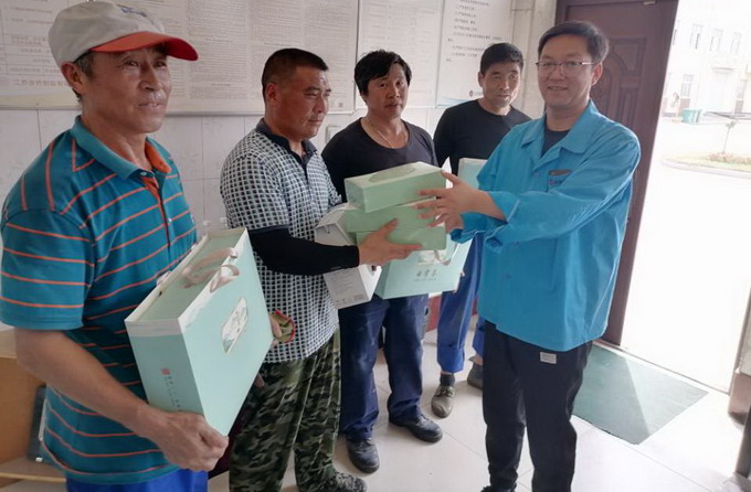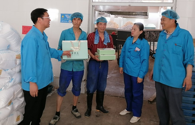 6月8日,我公司工會(huì)開(kāi)展夏季“送清涼”活動(dòng),黨委副書記、工會(huì)主席曹開(kāi)明一行,為高溫下的一線職工送去了茶葉、菊花茶等防暑降溫用品。
