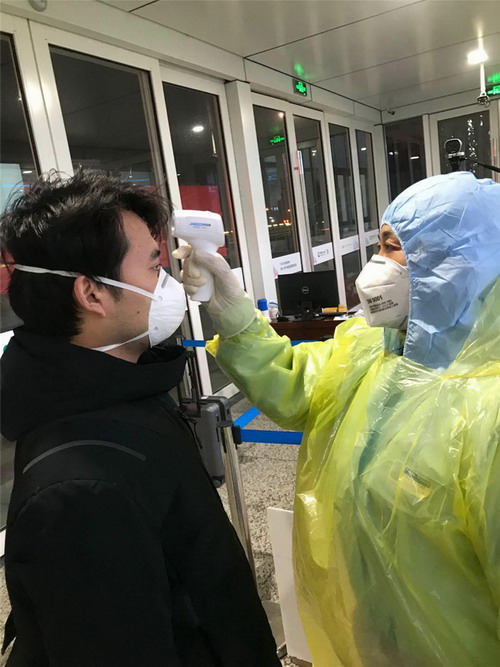 測量體溫看似輕松,但是對測溫槍反反復復的抬起放下,經(jīng)常累得胳臂酸疼。除了做好體溫檢測工作,每天還要回答成百上千名乘客的問題,維持秩序。看似簡單的話語、簡單的動作,但每天一個班次結(jié)束后,幾乎都是喉嚨嘶啞,她胳膊酸痛。因為工作的需要,幾乎每天一直都是站著工作,到家里腿都很僵硬。