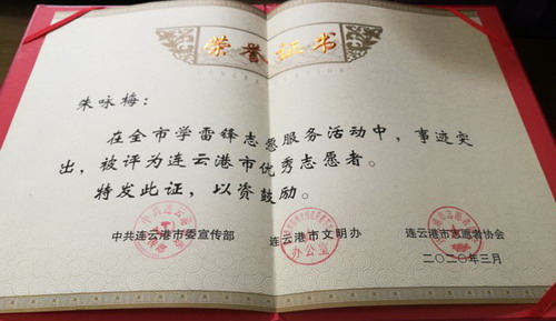 參加疫情防控志愿服務(wù)以來,朱詠梅一天都沒有休息,已為超過2萬名旅客檢測體溫。由于事跡突出,在全市學雷鋒志愿服務(wù)活動中,被評為連云港市優(yōu)秀志愿者。工作期間,渴了不敢喝水,餓了就吃泡面,雖然很辛苦,但是她覺得很自豪,她說:“我是一名預備黨員,也是一名國企職工,比起那些奮戰(zhàn)在疫情防控一線的醫(yī)務(wù)人員,我做的太少了;當前,全國人民都投入到新冠肺炎疫情防控工作中來,我只是為防控工作貢獻了自己的微薄的力量,我相信只要我們團結(jié)一心、眾志成城,就一定能早日戰(zhàn)勝疫情,早日打贏這場沒有硝煙的戰(zhàn)爭!(凌家佳)