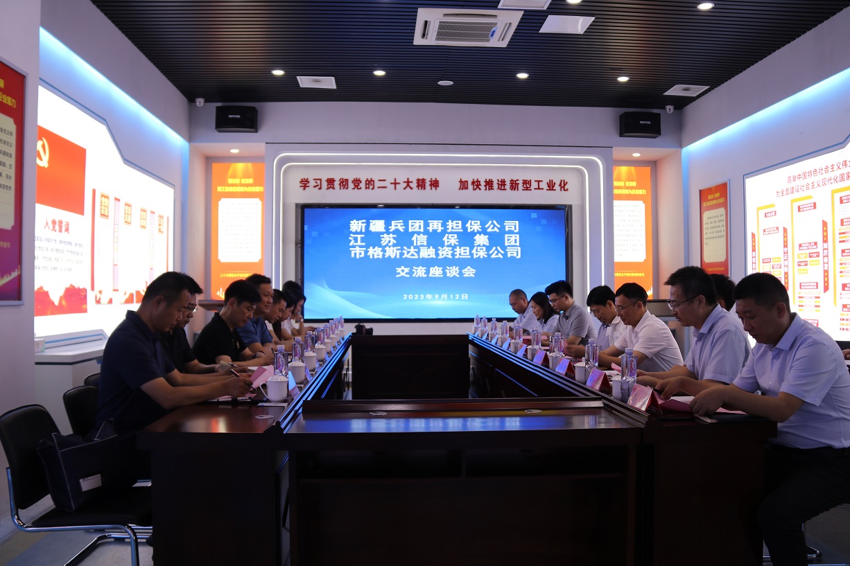 9月12日下午,新疆生產(chǎn)建設(shè)兵團再擔(dān)保有限公司黨委書記、董事長李彥武一行到訪格斯達擔(dān)保公司。江蘇省信保集團黨委副書記、總裁王松奇,集團黨委副書記、副董事長、總經(jīng)理張六林等領(lǐng)導(dǎo)出席座談會。