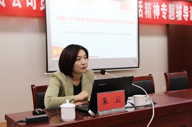 為了深入學習貫徹習近平總書記在慶祝建黨100周年大會上的重要講話精神,進一步教育引導全體黨員干部學黨史、悟思想、辦實事、開新局,不斷從黨史中領(lǐng)悟前進的智慧和力量。10月21日下午,青口公司舉辦貫徹建黨100周年講話精神專題輔導課,邀請市委黨校法政教研室主任,黨史學習教育市委宣講團成員朱云同志作專題輔導課。公司領(lǐng)導班子成員、各單位黨政工負責人、機關(guān)全體管理人員以及基層單位在職黨員參加。會議由黨委副書記梁永主持。