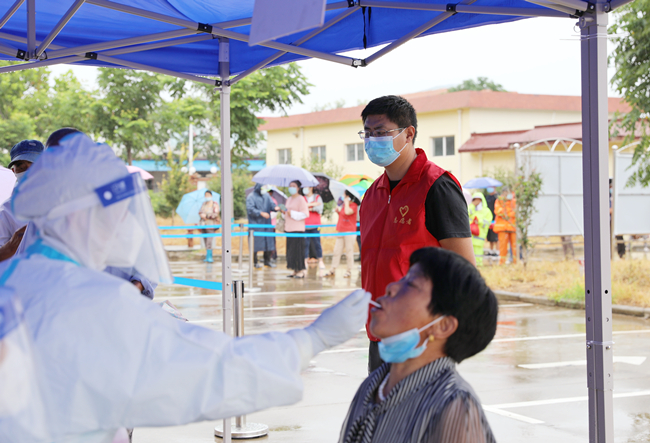 烈日炎炎,地表溫度已超40度。在疫情防控戰(zhàn)場(chǎng)上一抹抹鮮明的“志愿紅”用堅(jiān)守的毅力、揮汗如雨的付出,全力以赴守護(hù)筑牢“防堤”。