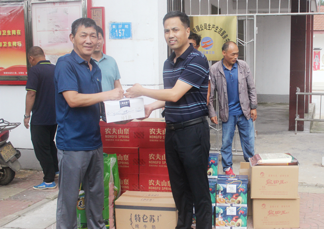 ? ? ? ?7月30日上午,公司領導班子成員分組帶著綠豆、白糖、礦泉水等防暑降溫物品,到各基層單位為職工們送去絲絲清涼和滴滴關愛。在慰問現(xiàn)場,領導們親自為一線職工送上降溫物品,并叮囑他們要提高自我保護意識和安全防范能力,合理安排工作時間,注意防暑休息。