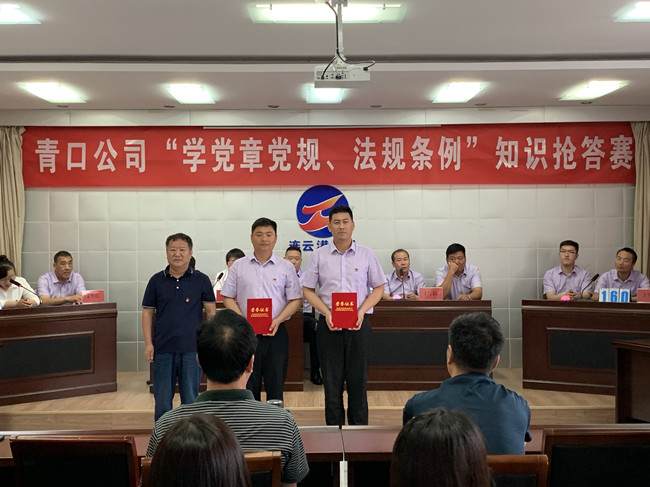 為推動黨員干部進一步掌握基本標準,增強黨的意識、黨員意識、紀律意識,更好地堅守初心、踐行使命,6月23日上午,青口公司舉辦“學黨章黨規(guī)、法規(guī)條例”知識搶答賽活動。來自公司8個支部的24名選手參加了比賽。公司黨委班子成員出席了活動。機關全體管理人員、各單位黨政工負責人到場觀看。