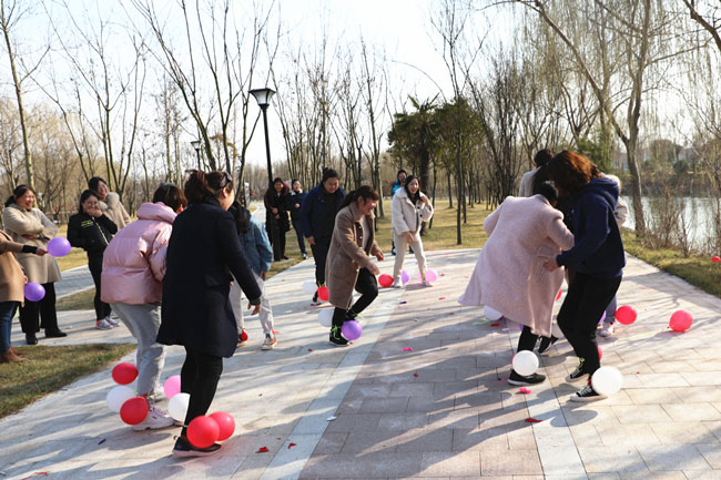 為使大家身心得到最大放松,投入戶外體驗(yàn)清新大自然,在絲路小鎮(zhèn)公園進(jìn)行了“三月女人天 別樣?jì)D女節(jié)”主題戶外活動。游戲“你畫我猜”中,隊(duì)員們有的配合默契一猜既中,也有的用肢體艱難的比劃著,引的大家捧腹大笑?!安葰馇颉庇螒蚋亲尙F(xiàn)場氣氛達(dá)到沸點(diǎn),每人都放開平日工作中的嚴(yán)謹(jǐn),放松心情在場地上追逐奔跑。大家在游戲中收獲了歡聲笑語及片片感動,同時,通過游戲提高大家的合作意識和進(jìn)取精神,營造濃郁節(jié)日氣氛。