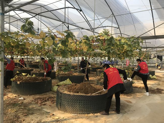 10月30日上午,青口投資公司團(tuán)委組織團(tuán)員青年前往育秧大棚參加志愿服務(wù),對200株限根葡萄施用有機(jī)肥,為來年掛果豐收蓄力。 (團(tuán)委)