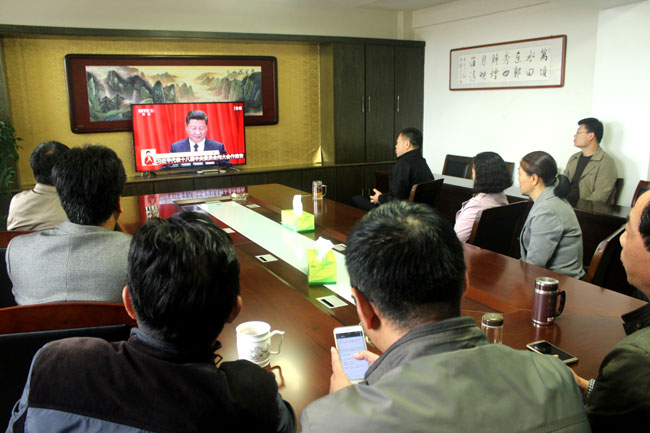 大家早早就集中到各收看點,做好收看準備。報告伊始,大家聚精會神,仔細聆聽報告內容,并不時做著記錄。大家一致認為黨的十九大是在全面建成小康社會決勝階段、中國特色社會主義進入新時代的關鍵時期召開的一次十分重要的大會,會議的召開是全黨、全國各族人民政治生活中的一件大事。習近平總書記所作的報告全面總結了黨的十八大以來治國理政的輝煌成就和寶貴經驗,展望了新時代中國共產黨的歷史使命、新時代中國特色社會主義思想和基本方略。習近平總書記的報告高瞻遠矚,氣勢恢宏,總攬全局,振奮人心。