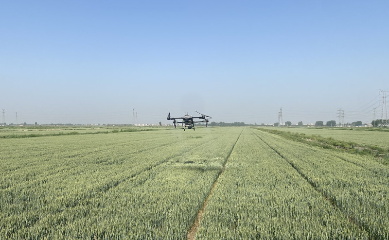 5月13日清晨,大新農(nóng)場搶抓有利天時,利用無人機(jī)開展“耐鹽堿”小麥葉面肥施用作業(yè),有效提升農(nóng)業(yè)精細(xì)化管理水平、提升農(nóng)機(jī)作業(yè)質(zhì)量和效率。(王璐)