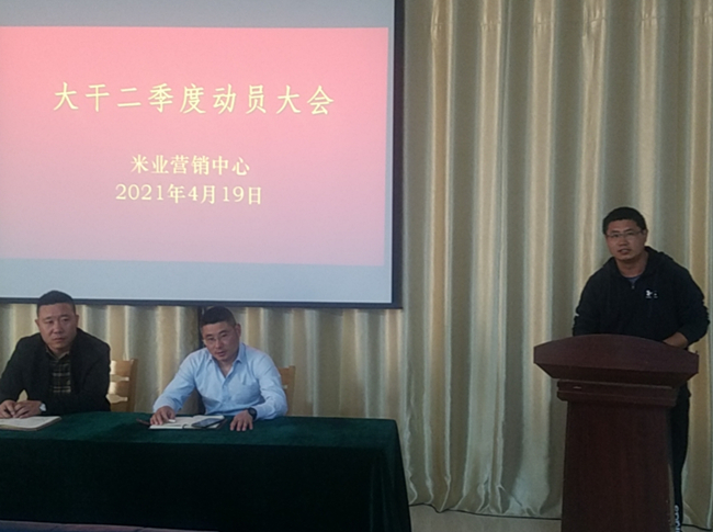 ? ? ? ?4月19日,米業(yè)營銷中心召開大干二季度動員大會,進一步貫徹落實投資公司二屆一次職代會暨第二次工代會會議精神,結(jié)合“崗位建新功、創(chuàng)效爭一流”大干二季度勞動競賽,規(guī)劃部署米業(yè)全年工作,分解全年銷售任務,以分解量化的季度指標,以月保季、以季保年,緊扣工作目標,明確責任分工,凝心聚力,共謀發(fā)展。