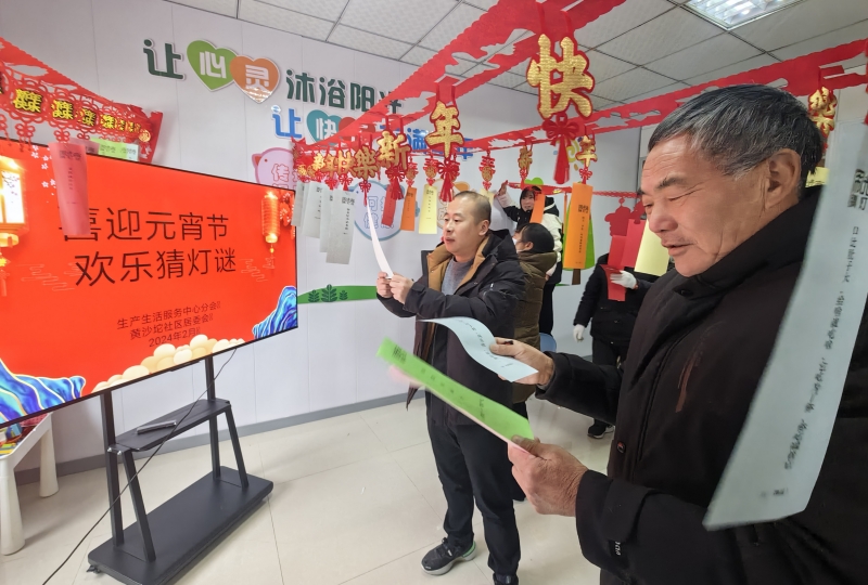 活動(dòng)現(xiàn)場,工作人員為大家發(fā)放職工燈籠的材料,大家按照步驟互相幫助、認(rèn)真制作,一盞盞漂亮的紅燈籠呈現(xiàn)在眼前,“點(diǎn)亮”了節(jié)日的氛圍。花燈制作結(jié)束后,開始了充滿趣味的猜燈謎活動(dòng)。20余條字謎錯(cuò)落有序的掛在紅繩上等待解答,大家熱情高漲,開動(dòng)腦筋,歡聲笑語充滿了整個(gè)房間。(田盛楠)
