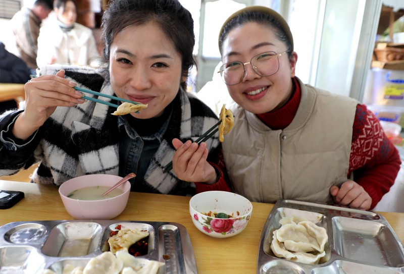 ? ? ? ?活動現(xiàn)場,大家有說有笑,默契配合,有的揉面團、有的拌餃餡、有的搟面皮、有的包餃子,大家互相切磋著包餃子的技巧,好不熱鬧,包出來的餃子也是形態(tài)各異,有元寶狀、小船狀、三角狀,還有獨具特色的花邊餃,女職工們紛紛拿著自己的勞動“成果”,擺在手心互相比較著餃子的形狀,隨著一雙雙靈巧的小手來回舞動著,在一片喜慶、溫馨的氛圍中,一個個口味不一的餃子就展現(xiàn)在大家面前。當一盤盤熱氣騰騰的餃子端上桌,食堂瞬間香氣四溢,吃著自己親手包的餃子,每個人的臉上無不洋溢著滿足、幸福的笑容。