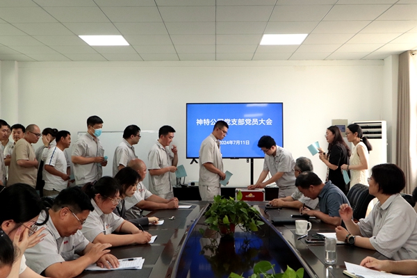 7月11日上午,神特公司黨支部召開黨員大會,公司全體黨員參加會議,討論和表決王勇等8名預(yù)備黨員轉(zhuǎn)正事項(xiàng)。會議由公司黨支部書記嚴(yán)成主持。