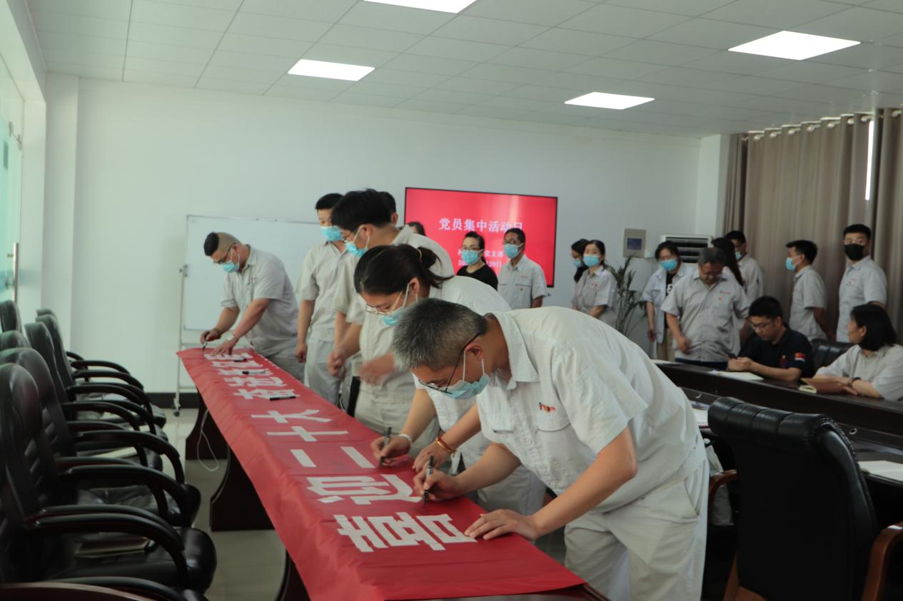 在七一即將來臨之際,公司組織全體黨員開展“喜迎二十大,奮進(jìn)新征程”黨員集中活動(dòng)日?;顒?dòng)中,與會(huì)黨員集體宣誓,重溫入黨誓詞,回憶入黨初心,并在條幅上簽名,作出鄭重承諾。公司黨支部表彰一批優(yōu)秀共產(chǎn)黨員,激勵(lì)全體黨員守初心、勇?lián)姑?、攻?jiān)克難、建功立業(yè)。