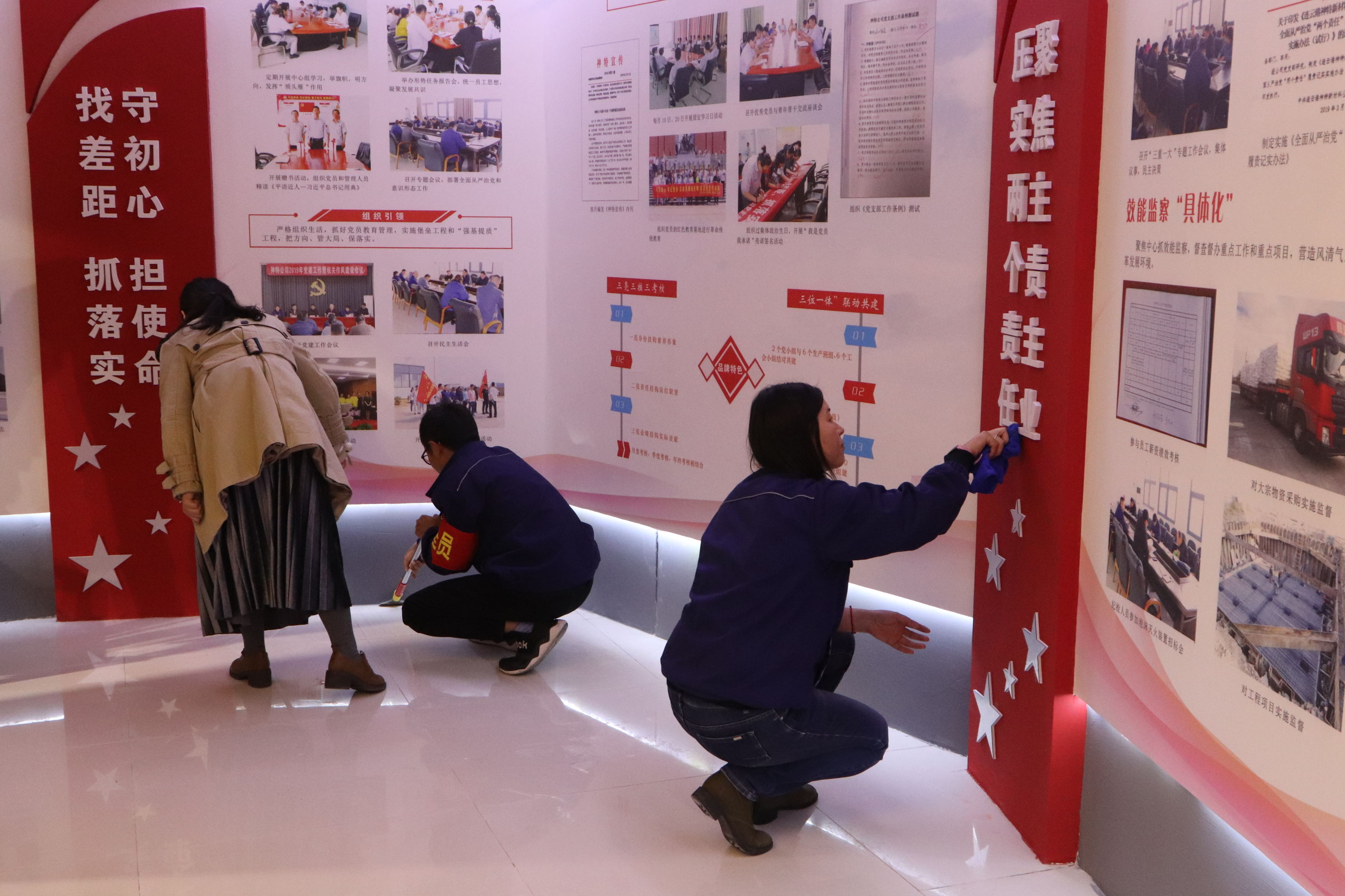 為進(jìn)一步提升“不忘初心、牢記使命”主題教育實(shí)效, 1025日,公司組織全體黨員開(kāi)展主題黨日活動(dòng)?;顒?dòng)中,組織黨員學(xué)習(xí)收看專題節(jié)目《榜樣4》,聆聽(tīng)榜樣故事,汲取榜樣力量,接受精神洗禮。組織黨員開(kāi)展志愿服務(wù)活動(dòng),打掃多功能展廳,黨員們干得熱火朝天、汗流浹背,充分發(fā)揮了黨員的先鋒模范作用。(神特宣)