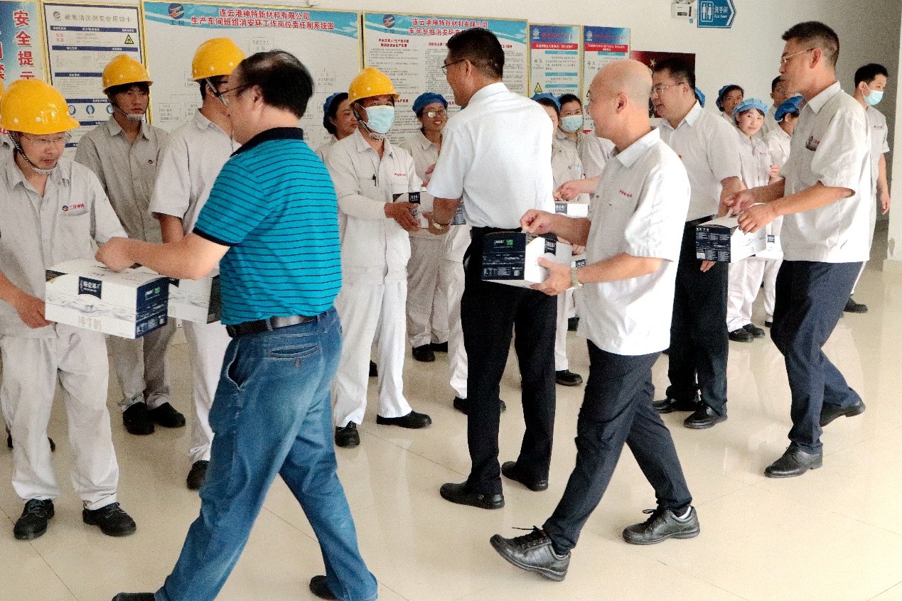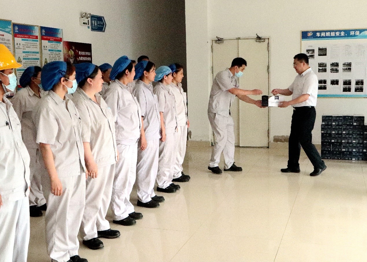 7月28日上午,集團公司黨委副書記戴鴻鳴、工會主席劉承志一行到公司慰問生產(chǎn)一線員工,為生產(chǎn)一線員工送來牛奶、綠豆、白糖、大米等防暑降溫慰問品。公司董事長張斌、總經(jīng)理韓立新等領(lǐng)導(dǎo)陪同。