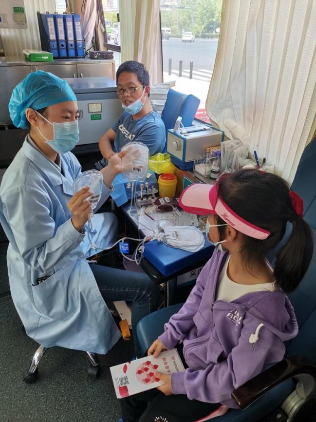 我的女兒很好奇,左瞅瞅右看看,我剛提醒她上面不能亂走,護士卻說,“沒關系,有什么不懂的可以問我?!?。于是,瞬間打開了她心中的“十萬個為什么”,她一會問問血液為什么是紅色的,一會問問這個設備是做什么的,后來問道小本子上那些字母干什么,為什么有的要畫一下?我們都給問蒙了,后來才想到她看過我十年前的獻血本,上面有血型勾選的;護士可能也是工作幾年的,不好意思的說,“我沒見過那樣的”。十幾分鐘的獻血很快就結(jié)束了,但是她們的對話仍在持續(xù),直到又有人上來了,才依依不舍的和護士姐姐再見,跟著我們一起離開。