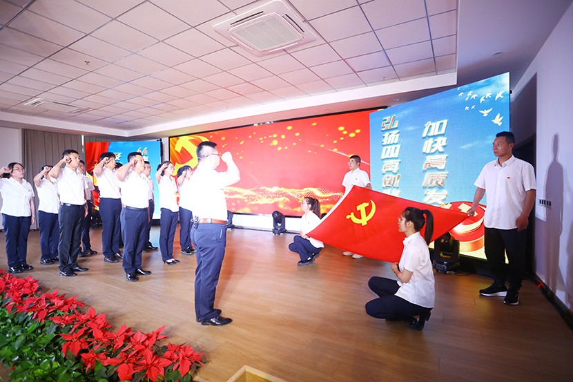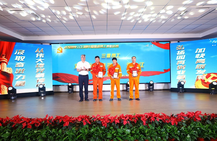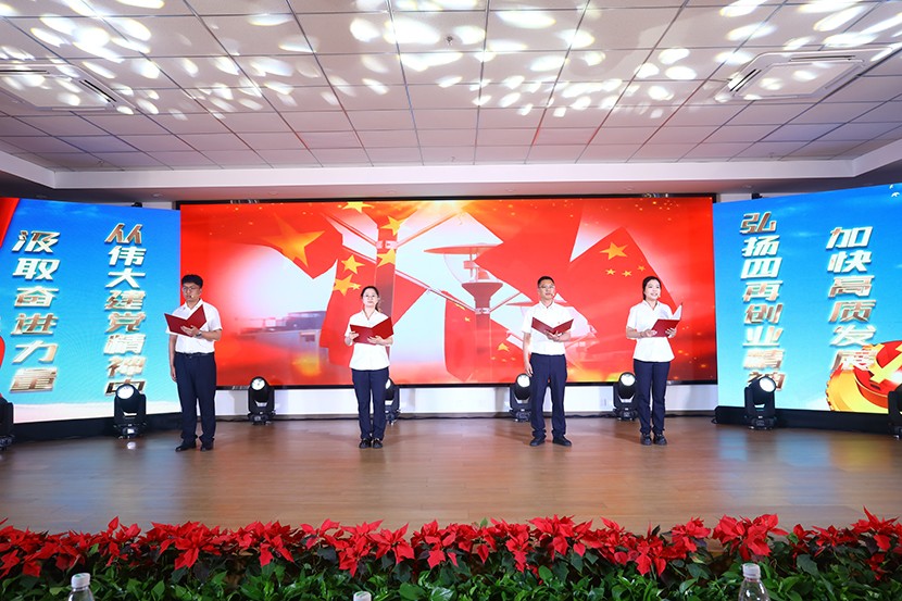 演出中,陳大壹、宋思雯、閆佳俊等十名新發(fā)展的中共預(yù)備黨員和新老黨員代表進(jìn)行了現(xiàn)場宣誓,并合唱《我宣誓》。對(duì)公司黨委評(píng)選出的星級(jí)員工進(jìn)行表彰,并對(duì)三星級(jí)員工進(jìn)行了專訪。