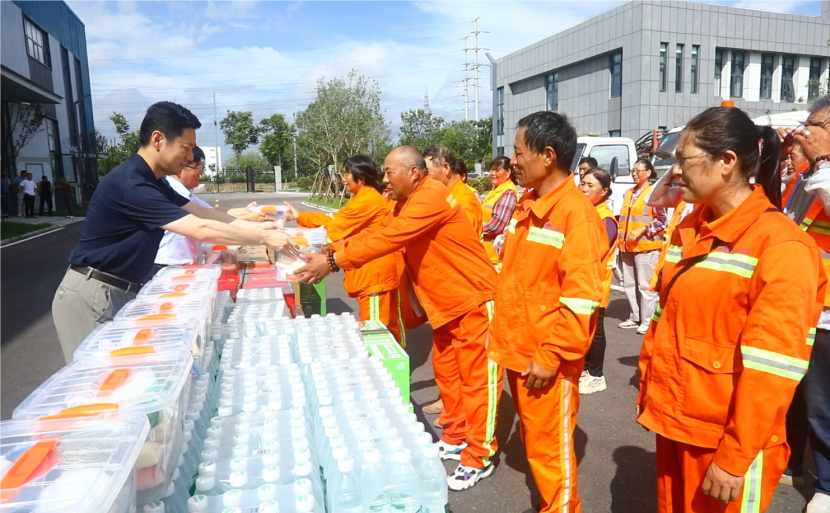 高溫下的熱情,用關(guān)愛撫慰人心。公司工會持續(xù)開展“夏送清涼保安康”活動,先后到先鋒東灘、躍湖路、東方大道、黃海大道等作業(yè)現(xiàn)場,慰問不畏高溫,不懼辛苦奮戰(zhàn)在高溫現(xiàn)場的干部職工,為在高溫天氣下堅守崗位的職工們撐起一片綠蔭。把清涼的飲用水、綠茶和綠豆湯,以及防暑降溫藥品送到職工手中,親切地囑咐職工們做好自我防護,提醒大家在戶外作業(yè)的同時要注意防暑降溫,注重作業(yè)安全和身體健康。
