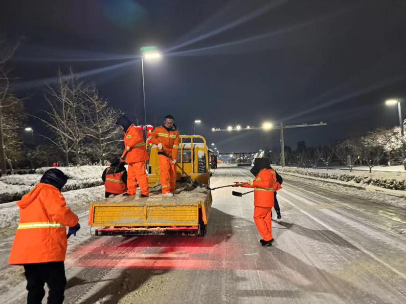 2024年的這場大雪,讓市政人奮力清除冰雪的戰(zhàn)歌,在雪花飄舞的寒夜里奏響。這“雪夜戰(zhàn)歌”器宇軒昂,爆發(fā)出山洪一般雄壯有力的旋律,隨著次日太陽的升起,這歌聲變得婉轉悠揚,深情地回蕩在轄區(qū)的道路上,溫暖了每個行人的心房。