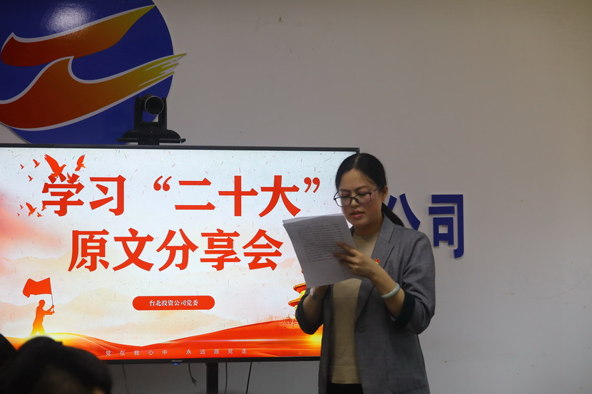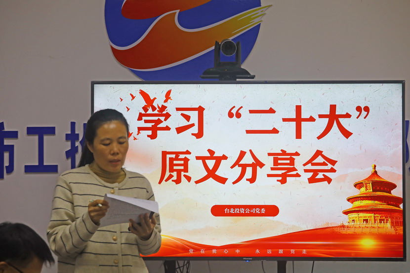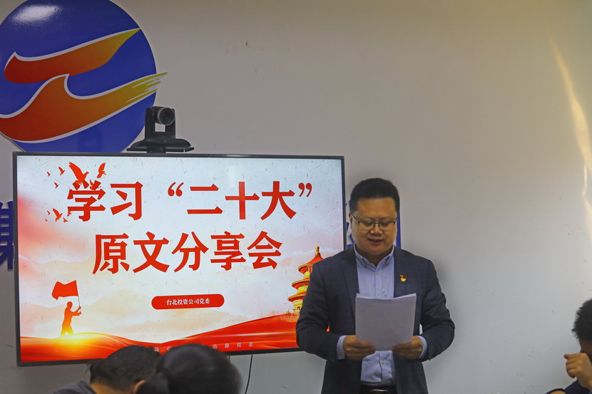 1021日,臺(tái)北投資公司黨委組織召開(kāi)黨的二十大報(bào)告學(xué)習(xí)交流會(huì),每位同志閱讀報(bào)告原文,針對(duì)報(bào)告內(nèi)容結(jié)合工作實(shí)際,分享心得體會(huì)、暢談工作思路、謀劃未來(lái)發(fā)展。