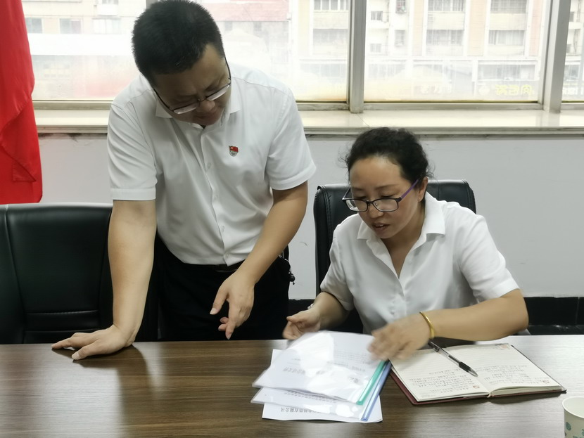 會后,集團(tuán)信訪主管李道榮檢查了工作臺賬。