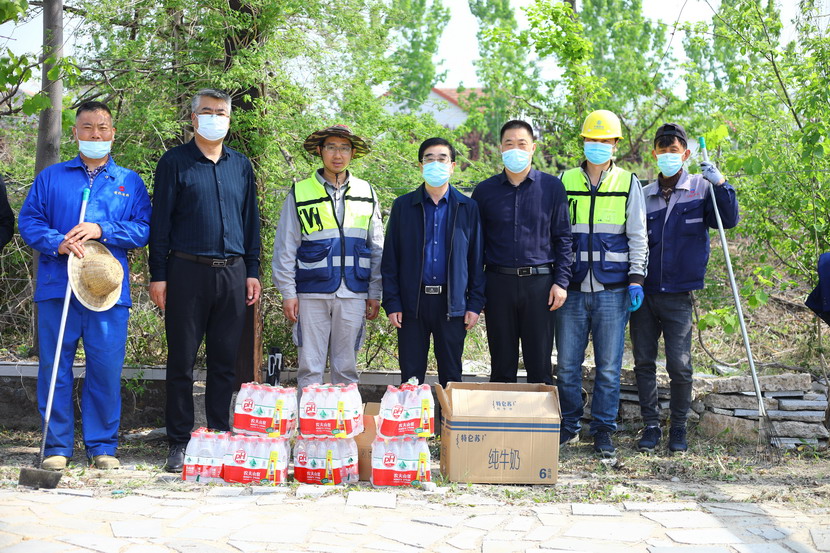 4月22日,投資公司領(lǐng)導(dǎo)王德志、楊善革、劉軍一行來(lái)到翔立分公司“蟠桃生態(tài)園”勞動(dòng)作業(yè)現(xiàn)場(chǎng)開(kāi)展慰問(wèn)活動(dòng),為堅(jiān)守崗位的一線(xiàn)員工道辛苦、說(shuō)感謝、送關(guān)懷,并送上清涼慰問(wèn)品。